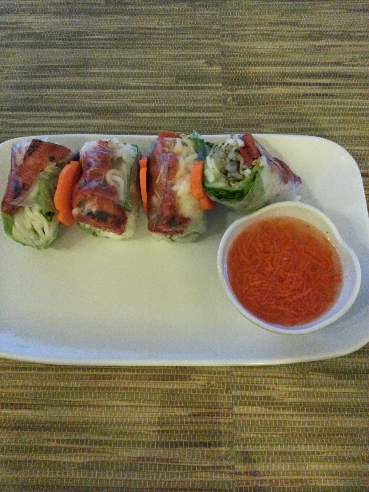 The "kit" effect of the Pho Bo is also a bit different than my other experiences in the series so far. The condiments in the form of fresh jalapenos, basil leaves, sprouts, lime, sriracha and hoisin sauces arrive at the table, then a steaming bowl of broth and noodles and a separate plate of thin raw surloin with paper thin onion. There are also cilantro and scallion in the noodles. The server begins the soup experience by putting the surloin and onion into the broth, then you can take over and finish composing the soup according to taste. The beef is cooked in the broth within a minute or two. The My Linh broth is less robust than Van's or Kim's , but it stands up to the other features of the soup very well. The surloin was deliciously flavorful and tender. While it's a more simple version with fewer options than the other restaurants' offerings, it's a good pho experience in my opinion. So if not everyone in your party wants soup, but you have a craving, My Linh will accommodate all.
